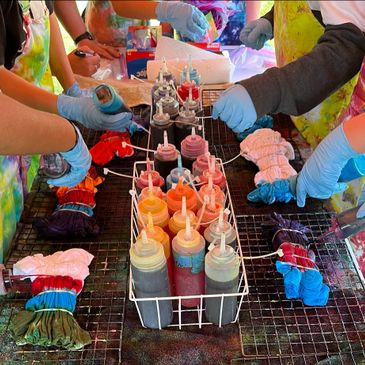 Tie-Dye-the ultimate wearable art! Color choices from over 30+ shades of the rainbow, shirt sizes from todler to adult 5X, over 10 patterns to choose from and expert guidance throughout activity.