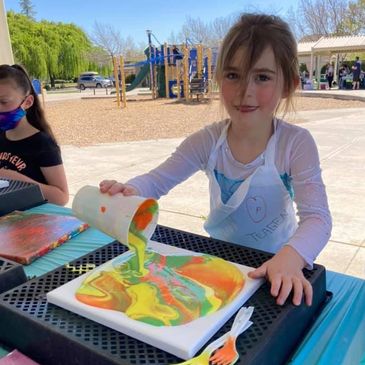 Abstract painting releases our creative inhibitions! Paint pour parties offer individuals the opportunity to explore color mixing, fluid art in motion, abstract art appreciation and multiple perspectives at once.