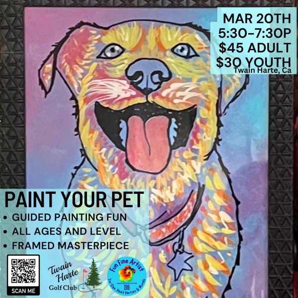 All ages are invited to paint your pet portrait on a glass frame at this event. Painting instruction and all supplies included.